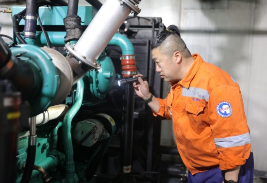 发电班班长张冬在对发电机进行巡视检查(12月1日摄)。新华社记者 黄韬铭 摄