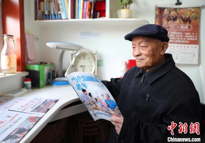 姚晓貌老人看报刊不用老花镜。杨厚伟 摄